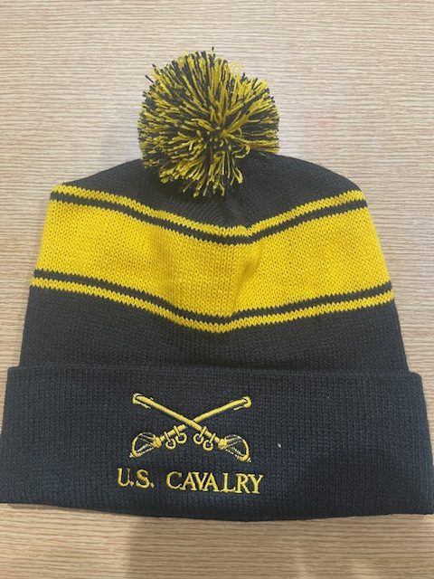 U.S. Cavalry yellow and black striped beanie with pom.